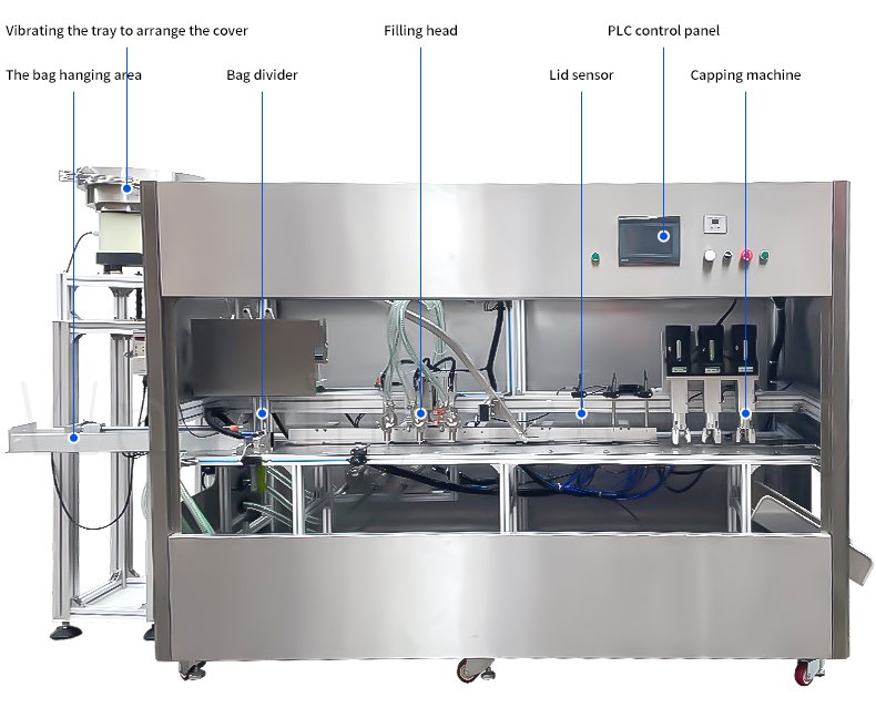 The cabinet-type machine body is sturdy and durable, with a stable and reliable intelligent control system. It features high-precision filling and reliable cap screwing performance, enabling efficient, continuous, and automated packaging. This improves production efficiency and product consistency, meeting the automated production needs of multiple industries.