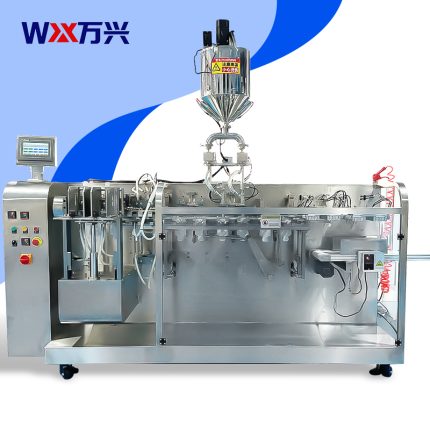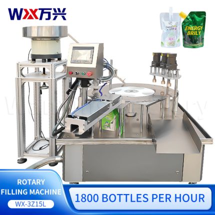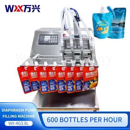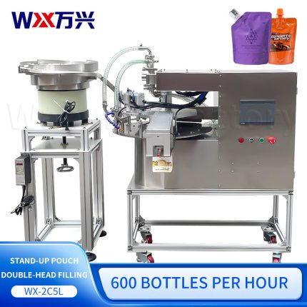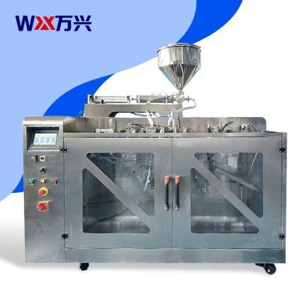 Cabinet-type three-head stand-up pouch filling machine: Three heads fill simultaneously, with a compact cabinet design. It ensures precise volume control and strong sealing performance. It is suitable for various products such as food and sauces, saving space and improving efficiency on production lines.
