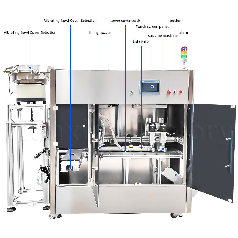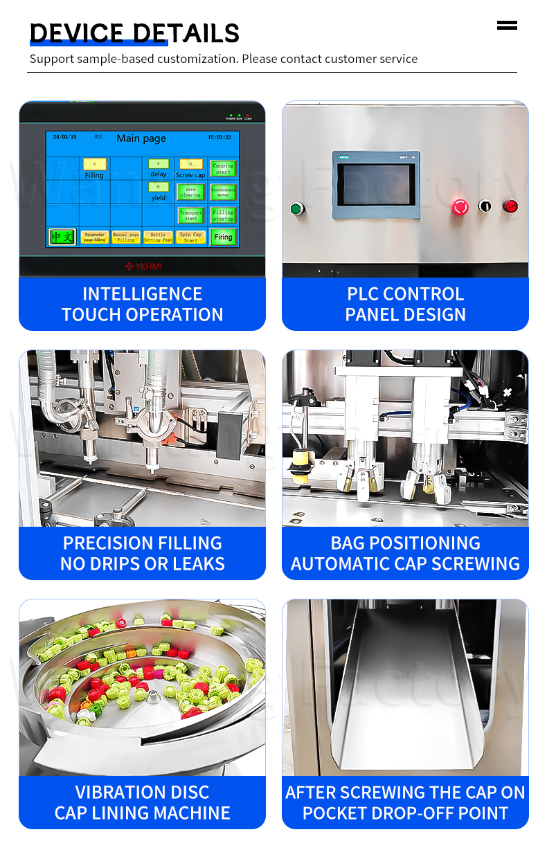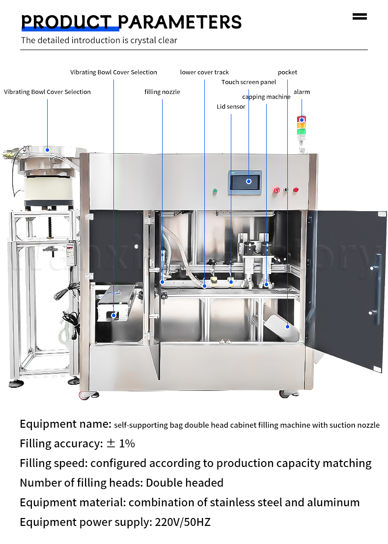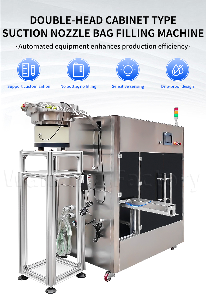 The cabinet design saves space, fully automatic operation reduces labor, dual-head synchronous operation boosts efficiency, with both heads working together to double productivity. It features precise measurement and quick sealing, and is compatible with multiple specifications of stand-up pouches. This makes liquid/particle filling less cumbersome and empowers production lines to be more efficient.